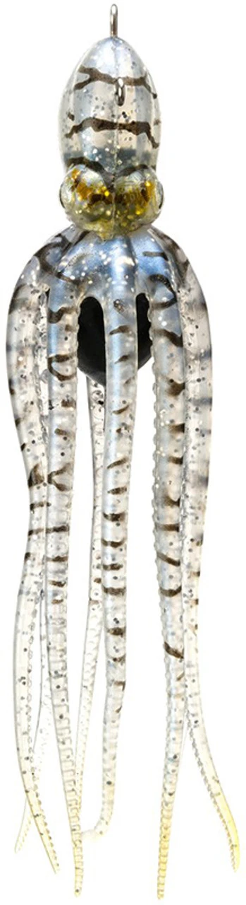 One of the most lifelike lures you’ll ever see, Mustad InkVader Octopus Jig looks, moves, and even squirts black ink just like the real thing. Constructed from a highly supple yet super tough TPE material, the InkVader’s eight tentacles respond to every movement of the rod tip with intense realism. The InkVader is most effectively deployed with a vertical jigging technique around reefs and other bottom structure where octopus may hide, but is also effective when slow trolled or even dead-sticked, as the slightest current or movement of the boat is enough to bring the free flowing tentacles to life. The heads are equipped with two different line-tie points to cater towards different approaches. Each InkVader Jig comes with 10 ink tablets that can be added to the head cavity, and will allow the lure to disperse a non-toxic and soluble black ink infused with actual octopus scent. This feature brilliantly mimics the behavior of an octopus fleeing from predators, and only heightens the InkVader’s unprecedented realism. There are many different iterations of the InkVader to choose from, including three different sizes, ten different weight options, and nine photorealistic color patterns modeled after actual species of octopus.